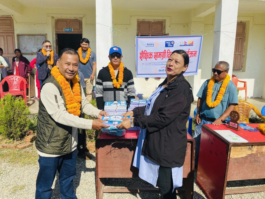 विद्यालयमा पुगी रोटरी क्लब अफ हेटौँडाका पदाधिकारीले विद्यालयका प्रधानाध्यापक मनबहादुर घलानलाई शैक्षिक सामग्री हस्तान्तरण गरेका हुन् । कार्यक्रममा विद्यालयका प्रधानाध्यापक घलानले रोटरी क्लबको सहयोगले विद्यालय र विद्यार्थी दुवैमा उत्साह थपिएको बताए। स्थानीय वासु लाल श्रेष्ठको सहयोगमा सम्पन्न कार्यक्रममा रोटरी क्लब अफ हेटौंडाका अध्यक्ष रोटेरियन प्रमेश प्रधानले विद्यार्थीहरूलाई लगनशील भएर अध्ययन गर्न प्रेरित गर्दै शिक्षा जीवनको सबैभन्दा ठूलो सम्पत्ति रहेकोमा जोड दिएका थिए ।