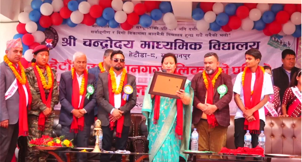 हेटौंडा उपमहानगरपालिका मेयर मिनाकुमारी लामाले स्थानीय शासन युक्त विद्यालय घोषणा पत्र वाचन गरी हैटौंडाका तीन वटा विद्यालयलाई घोषणा पत्र हस्तान्तरण गरेकी थिइन् । विद्यालय व्यवस्थापन समितिका अध्यक्ष दिनेशप्रसाद भण्डारीको अध्यक्षतामा भएको कार्यक्रममा २०७९ सालको एसईई परीक्षा उत्कृष्ट विद्यार्थी र विषयगत शिक्षकलाई नगद सहित सम्मानित गरिएको विद्यालयका प्रिन्सिपल विनोद सुवेदीले जानकारी दिए ।