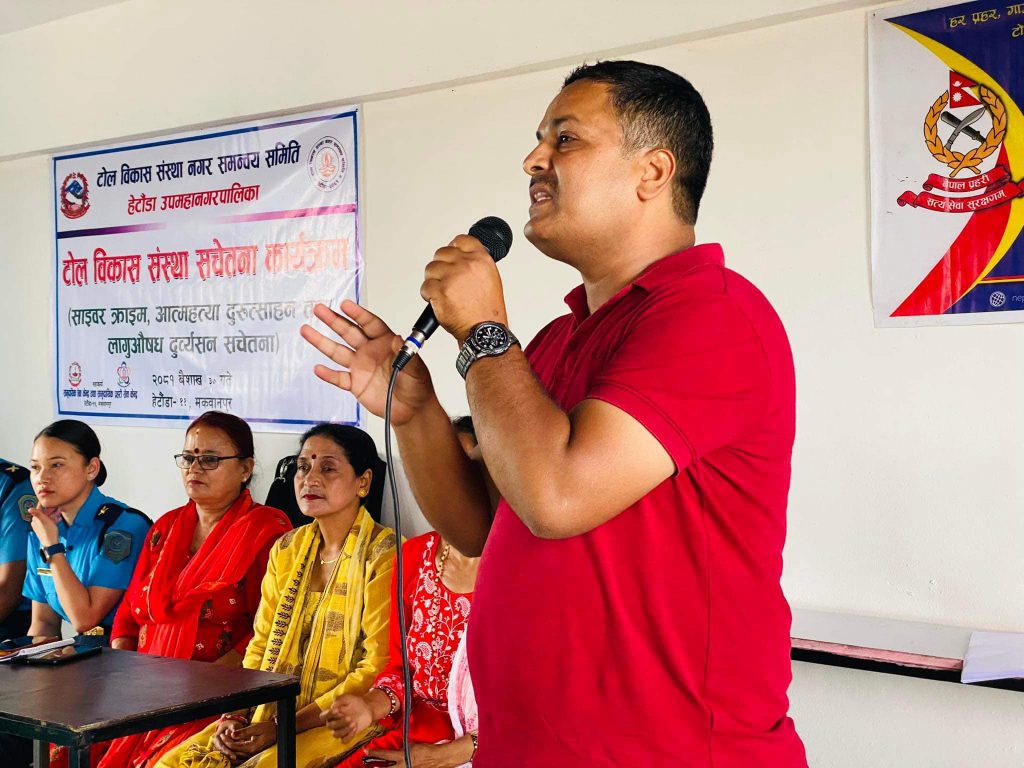 हेटौंडा, टोल विकास संस्था नगर समन्वय समिति, हेटौंडा उपमहानगरपालिकाको आयोजनामा आइतबार हेटौंडामा सचेतना कार्यक्रम भएको छ ।